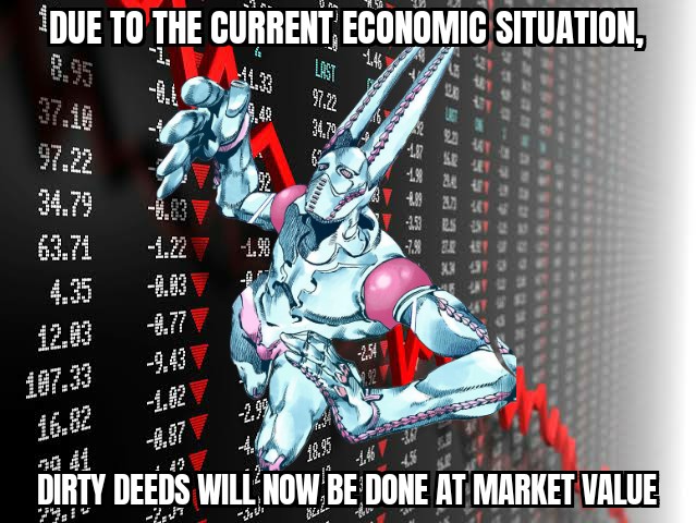 Dirty Deeds Done Dirt Cheap Requiem D4c R On Stands Online D4c Dirty Deeds Done Dirt Cheap Filthy Acts At A Reasonable Price Unfavorable Decisions Made At A Bargainably Low Amount Of Currency Equivalent To That Of Particles Lying On The Earth S Crust